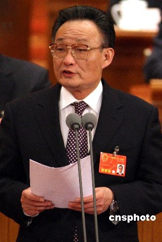 3月5日上午,十一屆全國人大一次會議在北京人民大會堂開幕。大會主席團常務主席、執行主席吳邦國主持大會。中新社發 任晨鳴 攝