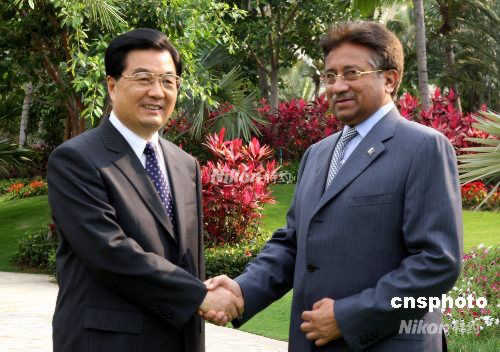 胡錦濤在三亞歡迎巴基斯坦總統穆沙拉夫