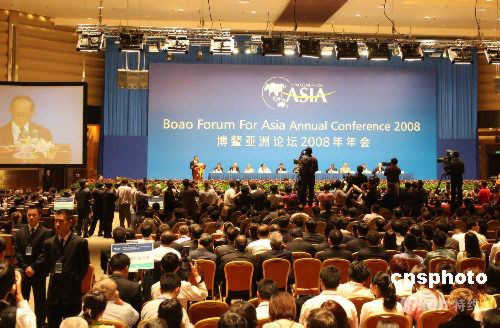 4月12日下午,博鰲亞洲論壇2008年年會正式揭幕,中國國家主席胡錦濤與九位外國元首和政府首腦以及眾多嘉賓出席此次年會。中新社發 任晨鳴 攝