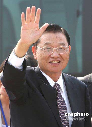 圖:江丙坤向中外媒體揮手致意