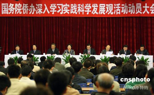 10月8日,國務院僑務辦公室在北京舉行深入學習實踐科學發(fā)展觀活動動員大會。國務院僑辦主任李海峰出席大會并講話。 中新社發(fā) 廖文靜 攝