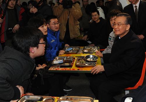 2月15日晚,正在天津調查研究的中共中央政治局常委、國務院總理溫家寶來到南開大學親切看望大學生。他勉勵同學們要心系國家,努力學習,甘于奉獻,樹立正確的擇業觀念。 新華社記者 李學仁 攝
