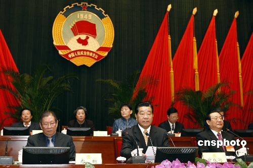 2月25日,政協(xié)第十一屆全國委員會(huì)常務(wù)委員會(huì)第四次會(huì)議在北京開幕,全國政協(xié)主席賈慶林出席并主持會(huì)議。會(huì)議將聽取和討論有關(guān)即將召開的全國政協(xié)十一屆二次會(huì)議事項(xiàng)、審議通過有關(guān)議程和報(bào)告等。中新社發(fā) 盛佳鵬 攝