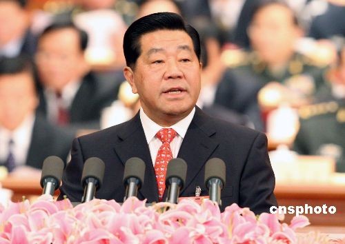 全國政協(xié)十一屆二次會議3月3日下午在北京人民大會堂開幕,全國政協(xié)主席賈慶林作全國政協(xié)常委會工作報告。中新社發(fā) 宋吉河 攝