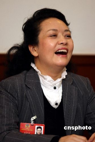 3月4日,全國政協(xié)十一屆二次會議進行分組討論,彭麗媛被青聯(lián)界其他委員的風(fēng)趣發(fā)言逗樂。中新社發(fā) 傅丹丹 攝