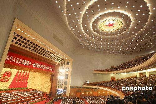 3月5日,十一屆全國人大二次會議在北京人民大會堂開幕。中新社發 盛佳鵬 攝