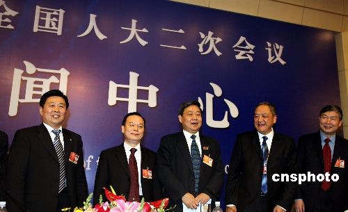 3月7日下午,出席十一屆全國人大二次會議的5位大學校長代表:山東大學校長徐顯明,北京大學校長、中科院院士周其鳳,南開大學校長、中科院院士饒子和,中山大學校長黃達人、華中科技大學校長李培根(從左至右)在大會新聞中心就教育公平等問題接受媒體采訪。