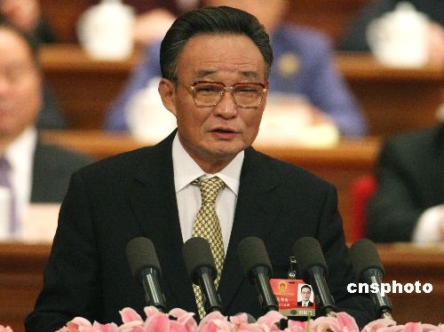 3月9日,十一屆全國人大二次會議第二次全體會議在北京人民大會堂舉行,全國人大常委會委員長吳邦國作《全國人民代表大會常務委員會工作報告》。中新社發 任晨鳴 攝