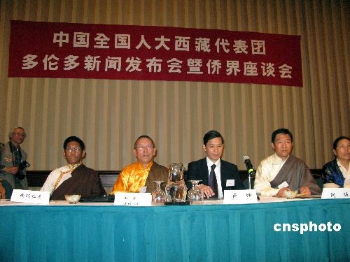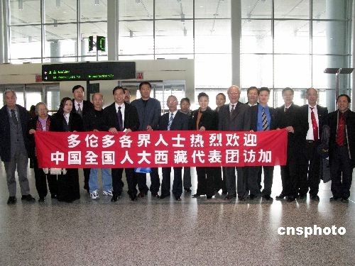 當地時間三月二十日,結束在美國的訪問后,由五位在西藏成長和生活的全國人大代表組成的中國全國人大西藏代表團赴加拿大繼續訪問。在加拿大機場受到當地各界人士的熱烈歡迎。二十日抵達多倫多數小時后,代表團舉行記者會,接受二十多家媒體四十多名記者的集體采訪,詳細回答記者的提問。中新社發 孫宇挺 攝