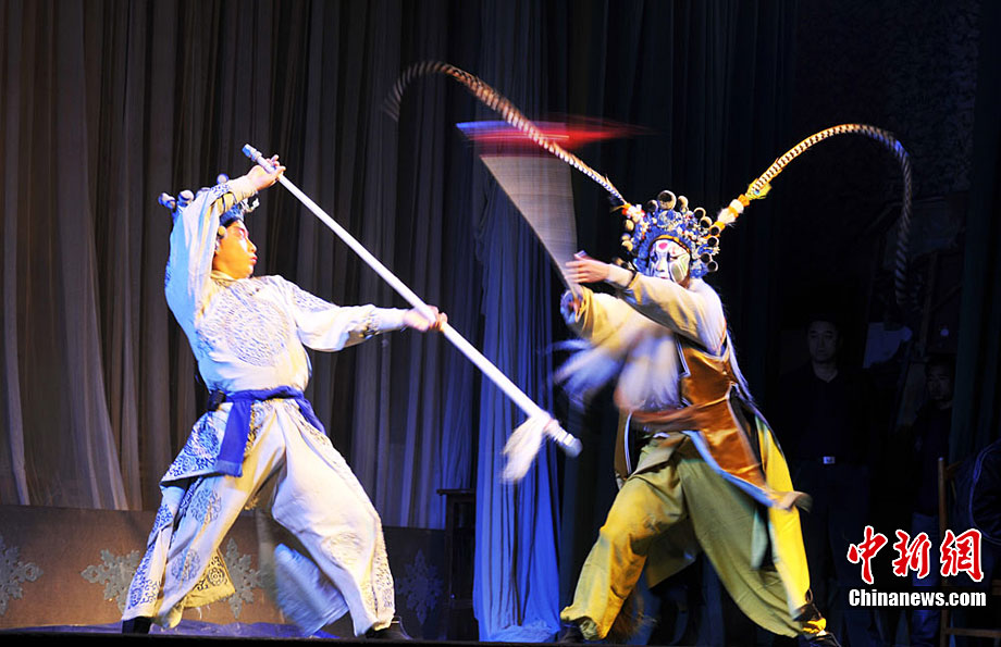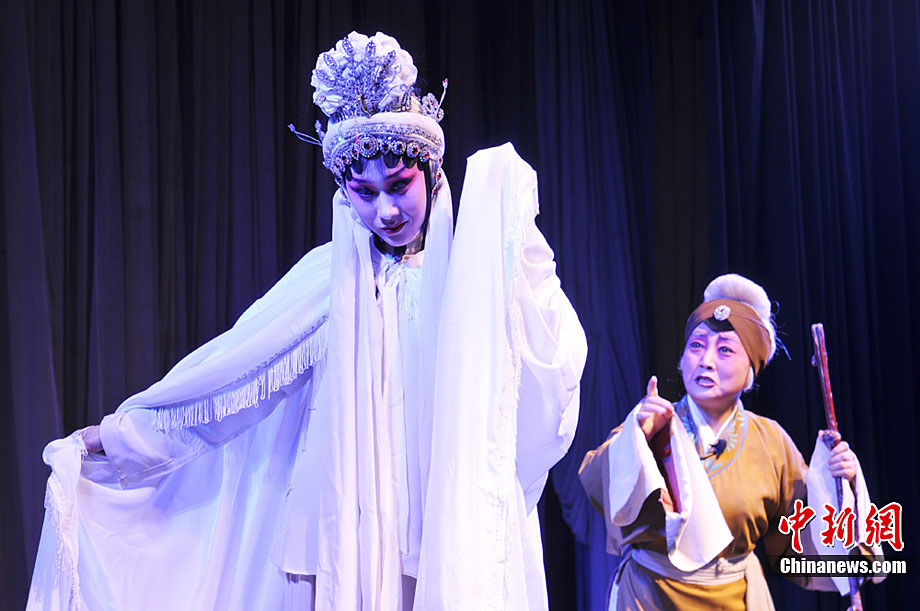 10月18日至22日,甘肅秦劇團到基層為鄉下人唱“大戲”,演員們唱念做打演,招招真功夫給鄉親們送來了一場場戲曲大餐。《三滴血》、《火焰駒》、《竇娥冤》等演出,一出出膾炙人口的傳統劇目風格各異,精彩紛呈,鄉親們在一次次的情節跌宕中笑聲不止、掌聲不斷。秦腔又稱亂彈,源于西秦腔,流行于中國西北的陜西、甘肅、青海、寧夏、新疆等地,又因其以棗木梆子為擊節樂器,所以又叫“梆子腔”,俗稱“桄桄子”,經國務院批準列入第一批國家級非物質文化遺產名錄。楊艷敏 攝