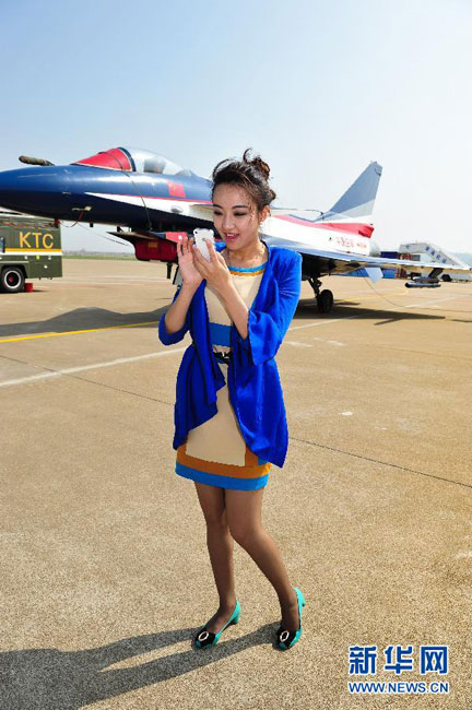11月13日,一名女觀眾參觀殲10戰機后查看用手機拍攝的照片。當日,第九屆中國國際航空航天博覽會在珠海開幕,除了豐富多樣的飛機展示,各種職業女性也成了一道獨特的風景線。 新華社記者楊光攝 圖片來源:新華網
