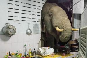 泰國一頭大象進廚房