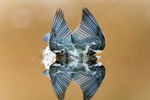 翠鳥入水展翅倒影美如蝴蝶