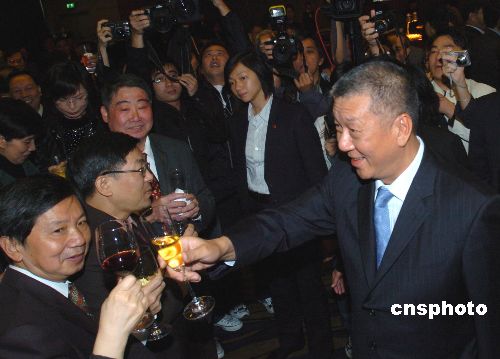 十二月二十日,慶祝澳門特別行政區成立八周年招待酒會在澳門旅游塔舉行,澳門特首何厚鏵在招待會上致詞,中央人民政府駐澳門聯絡辦公室主任白志健等嘉賓出席招待會,賓主舉杯共祝祖國富強繁榮。中新社發 史利 攝