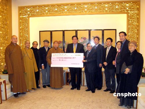 圖:香港佛教聯(lián)合會向內(nèi)地雪災(zāi)捐款三百萬港元