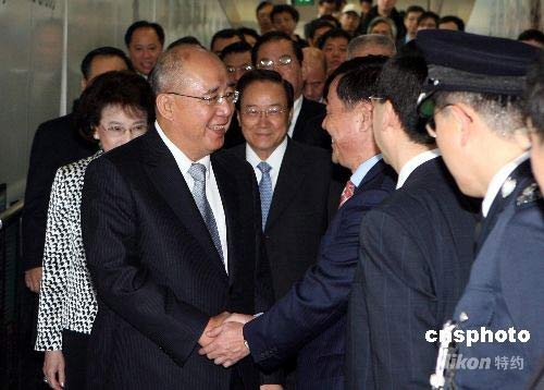 五月二十六日,中國國民黨主席吳伯雄一行抵達香港國際機場。應中共中央和中共中央總書記胡錦濤的邀請,吳伯雄率中國國民黨訪問團將于五月二十六日至三十一日前往南京、北京、上海參觀訪問。這是重掌政權后,國民黨主席首次訪問大陸。中新社發 武仲林 攝