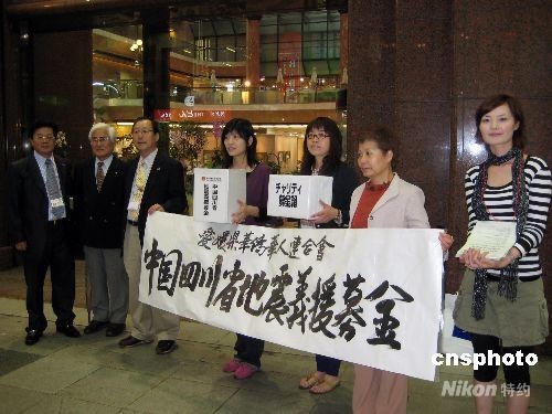 近日,日本愛媛縣華人華僑聯合會在縣日中友好協會及愛媛縣學友會等的配合下,共進行了兩次街頭募捐活動。現募捐共七十多萬日元的賑災款。據悉,聯合會將以一百萬日元為目標,再進行一次街頭募捐活動,為祖國震區同胞盡綿薄之力。中新社發 林會南 攝