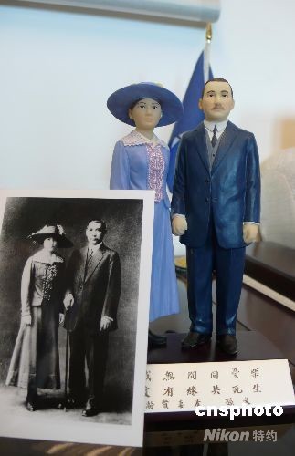 八月七日農歷七月初七,中國國民黨推出孫中山、宋慶齡革命戀人版公仔,參照一九一五年十月兩人結婚后的一張合影。公仔基座印有“精誠無間同憂樂、篤愛有緣共死生”字樣,國民黨黨史館主任邵銘煌解釋,這是當年孫中山寫給宋慶齡的情詩,看得出兩人情深意濃。中新社發 曾嘉 攝