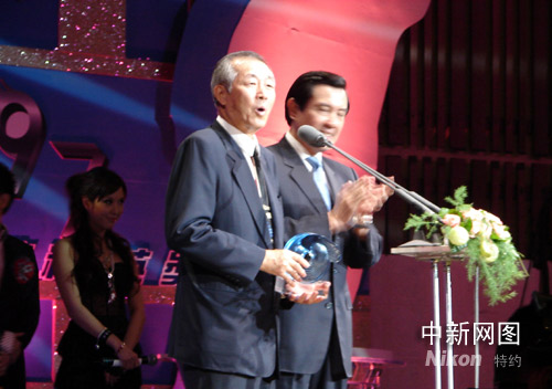 九月六日,臺灣“2008運動休閑產(chǎn)業(yè)展暨嘉年華”舉行“二00八年臺灣運動精英頒獎典禮”,馬英九出席,還向在北京奧運會跆拳道比賽中表現(xiàn)神勇的蘇麗文和獲得終身成就獎的蔡特龍(左)頒獎。曾福志 攝