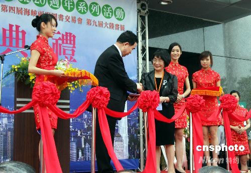 9月20日,紀念海峽兩岸出版交流二十周年系列活動在臺北開幕。圖為參加活動的大陸參訪團團長、紀念海峽兩岸出版交流二十周年系列活動組委會名譽主任柳斌杰,代表大陸出版界向臺灣高校圖書館的代表捐贈圖書。中新社發 陳立宇 攝