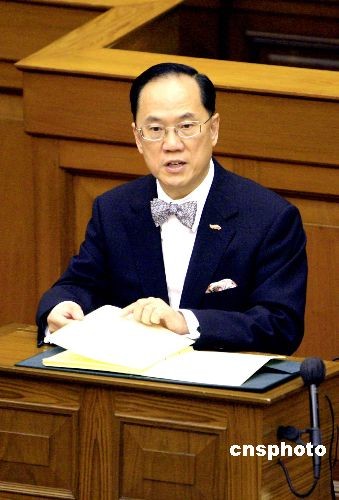 十月十五日,香港行政長(zhǎng)官曾蔭權(quán),向立法會(huì)發(fā)表二零零八至零九年施政報(bào)告。中新社發(fā) 張勤 攝
