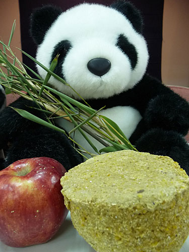 臺北市立動物園為大熊貓團團圓圓準備了食物竹子與窩窩頭,圖為特制食物首度曝光。(“中央社”圖)