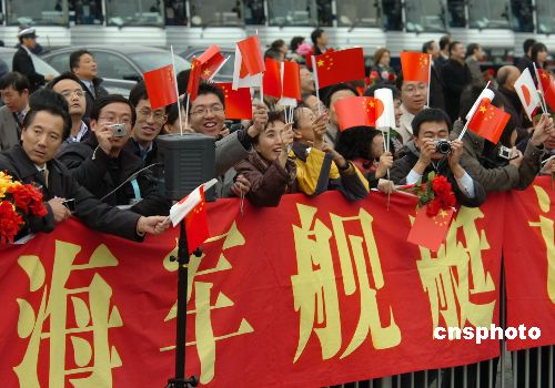 11月28日上午10點(diǎn),中國海軍導(dǎo)彈驅(qū)逐艦“深圳”號抵達(dá)日本東京晴海碼頭開始對日本進(jìn)行正式友好訪問,日方舉行了盛大的歡迎儀式。中新社發(fā) 滕劍峰 攝