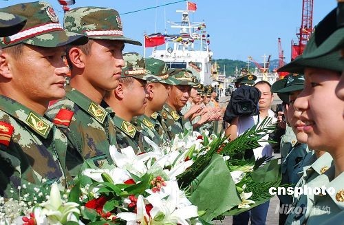 8月26日,浙江邊防總隊舉行儀式,歡迎執行青島奧帆賽海上安全保衛任務歸來的浙江邊防海警官兵。中新社發 何蔣勇 攝
