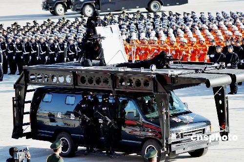 11月3日,沈陽市公安局為建局60周年,舉行閱兵式。近2000人40個方隊,所有警種參加了儀式。閱兵式展示了沈陽公安打擊犯罪、反恐的強大力量。中新社發(fā) 文契 攝