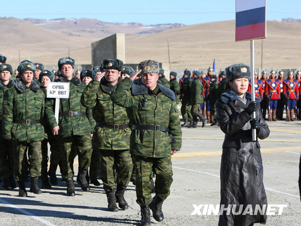 11月8日,蒙古國(guó)和俄羅斯聯(lián)合維和軍演在蒙中部的中央省正式開(kāi)始。這次軍演為期30天,在蒙中部的中央省和北部的鄂爾渾省進(jìn)行,是蘇聯(lián)解體后蒙俄兩國(guó)首次舉行聯(lián)合軍演。蒙俄共有700名官兵參加演習(xí),其中450名為俄方官兵。 新華社記者郝利鋒攝