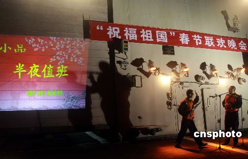 中國傳統的除夕前夜,正在印度洋亞丁灣海域執行護航任務的中國海軍艦艇編隊“海口”號導彈驅逐艦,在艦艉甲板上舉行“‘祝福祖國’春節聯歡晚會”。護航官兵們紛紛登臺獻藝,將獨具特色的甲板“春晚”推向一個又一個歡樂的高潮。中新社發 孫自法 攝