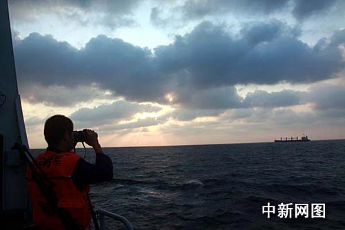 圖:中國海軍護航軍艦護航“豐盛海”號商船