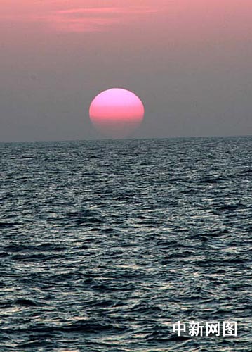 圖:亞丁灣海上日落時一輪紅日絢麗多彩