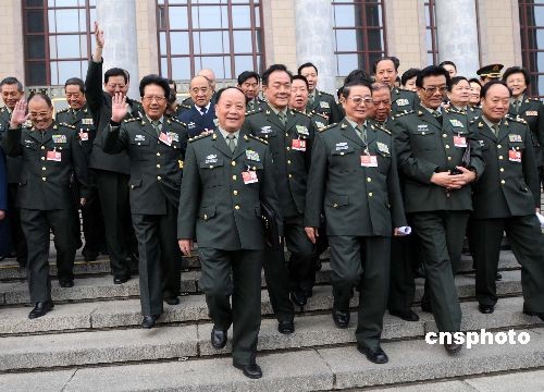 2009年3月12日上午,中國人民政治協商會議第十一屆全國委員會第二次會議圓滿完成各項議程后在人民大會堂閉幕。圖為軍隊政協委員集體走出人民大會堂。中新社發 宋健浩 攝