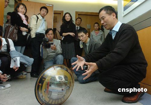 一月八日,二零零七年十二月剛剛當選的中國工程院院士、著名空間機械人與智能控制專家、香港中文大學機械與自動化工程學講座教授徐揚生教授會見傳媒,介紹部分最新科研成果。中新社發 鄧慶樂 攝