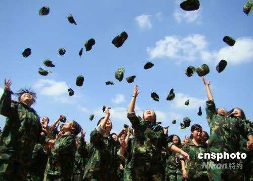 全國各高校新生一開學便開始大學“第一堂課”——軍訓。揚州大學文學院針對194名“90后”大一新生,提出了“快樂軍訓”的口號,除了為期10多天的正常軍事訓練外,學院還開展了趣味游戲、“軍花”評比、內(nèi)務競賽等活動,為新生的軍訓生活增添了一份樂趣,同時促進彼此間的認識和了解。中新社發(fā) 陳中秋 攝
