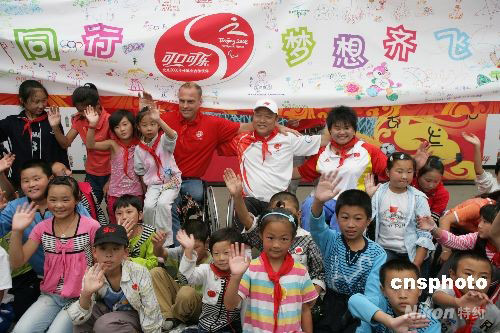 希望小學(xué)學(xué)生與殘奧會(huì)冠軍共同感受殘奧精神