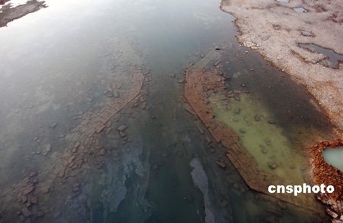 11月21日,京杭運河山東臺兒莊段明朝古運河船閘閘址。近日,一座明朝時期的古運河船閘在京杭運河山東臺兒莊段進行河道疏浚工程時被發現。這座古船閘全部由條狀塊石和大塊黑磚壘砌,船閘最窄處有八米,反映出當時漕運繁忙景象。據考證船閘修建于明朝萬歷年間,是明代泇運河上的頓莊船閘,是棗莊段運河(泇運河)的八閘之一,距今400多年。中新社發 高啟民 攝