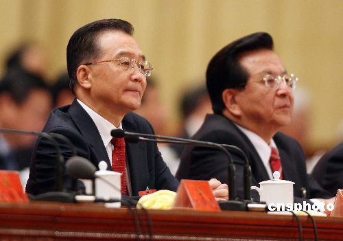 十月二十一日,中國共產黨第十七次全國代表大會在北京人民大會堂閉幕,溫家寶、曾慶紅出席會議。中新社發 毛建軍 攝