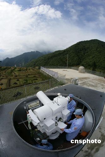 10月22日,西昌衛星發射中心技術人員調試跟蹤火箭前期軌道的光學經緯儀。中國國防科工委當晚在北京宣布,“嫦娥一號”衛星將于24日至26日在西昌衛星發射中心擇機發射,首選發射窗口為24日18時左右。中新社發 秦憲安 攝