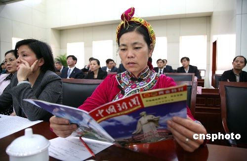 由中國新聞社出版的《中國新聞》兩會特刊,在全國兩會期間受到代表、委員的歡迎,他們評價《中國新聞》兩會特刊內(nèi)容權威、角度獨特、行文輕松活潑。圖為江西代表團畬族人大代表在閱讀《中國新聞》兩會特刊。中新社發(fā) 吳慶才 攝