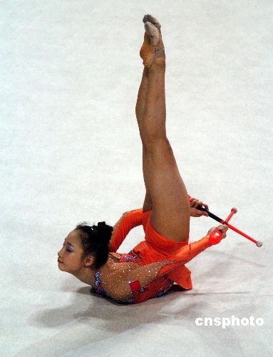 2008年4月6日,全國藝術體操冠軍賽在深圳體育館進入第三天。由于這是北京奧運前最后一次全國選拔積分賽,因此吸引了來自全國17支隊伍的精英參賽。深圳名將李紅楊在成年組個人全能比賽中獲得金牌。中新社發 吳峻 攝