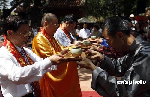 4月6日,臺灣歷史上首次以茶祭孔的“臺茶祭孔 府城飄香”主題茶會在臺南孔廟登場。主辦方稱,祭孔時安排敬茶儀式,旨在讓民眾了解茶禮儀的意義與內涵,彰顯臺茶祭孔禮儀,復興茶禮圣神仙佛的優良傳統風氣。中新社發 杜洋 攝