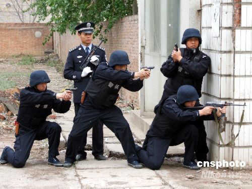 4月11日,河南濮陽市在一家廢棄的化工廠內舉行了代號為“龍鄉衛士一號”的反恐怖實戰演練。實戰演練演示了處置危險化學品爆炸火災、緝拿恐怖分子等反恐行動。演練共有200余名公安干警、駐軍部隊、武警和消防官兵,以及衛生、環保、電力等人員參加。通過實戰演練的舉行,展現了軍警民協同作戰,處置恐怖襲擊事件和重大突發事件的能力和水平。中新社發 劉敬寬 攝