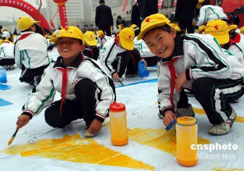 圖:河南濟源“愚公娃”繪制巨型福娃(2)