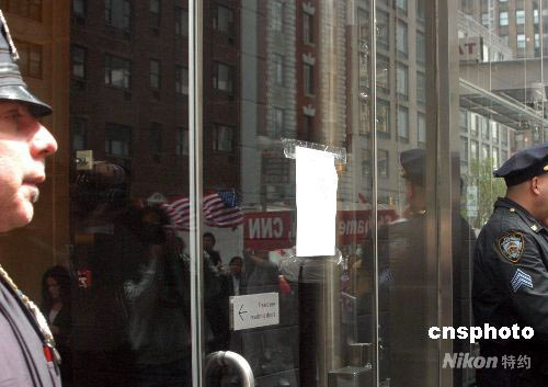 數百名華人及留學生二十一日在美國有限電視新聞網(CNN)駐紐約辦公樓附近游行,抗議CNN辱華報道,并將抗議書貼在CNN門前。中新社發 李靜 攝
