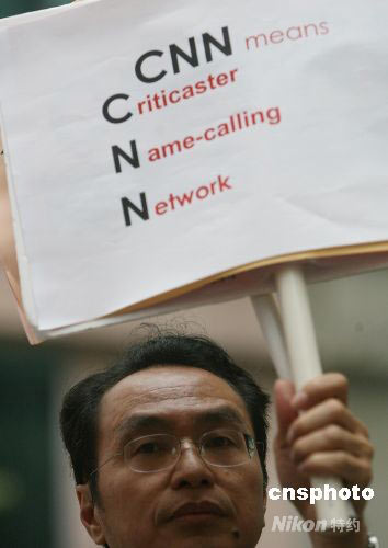 香港教育團體集會抗議CNN電視主播辱華言論。中新社發 武仲林 攝