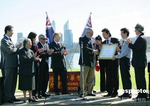 13個(gè)西澳華人社團(tuán)的代表向西澳參加北京奧運(yùn)的運(yùn)動(dòng)員捐贈(zèng)了五萬澳幣(近四十萬人民幣),表達(dá)西澳洲華人對澳大利亞體育事業(yè)的支持。 中新社發(fā) 高周丹 攝
