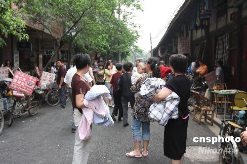 5月12日14時28分,在四川汶川縣(北緯31度,東經103.4度)發生7.8級地震,四川省會成都有強烈震感,市民緊急從建筑物中跑出來,在街道上緊急避險。 中新社發 黃榮 攝