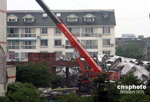 汶川地震災(zāi)區(qū)都江堰市因?yàn)?zāi)造成很大的破壞。圖為5月13日拍攝的都江堰受災(zāi)非常嚴(yán)重的中醫(yī)院。中新社發(fā) 黃榮 攝